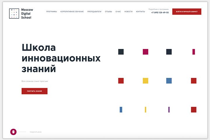 Чтоб увидеть все страницы и анимацию проекта - перейдите по ссылке https://mosdigitals.ru/