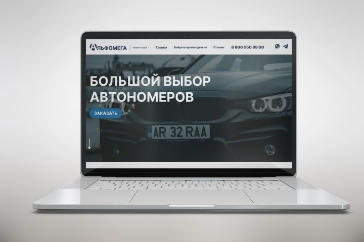 Интерфейс сайта по продаже автомобильных номеров "Альфамега"