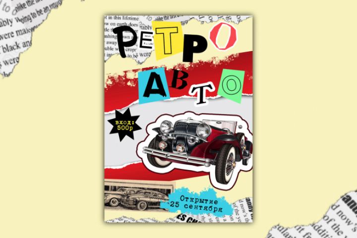 Баннер для соц. сетей в ретро стиле для приглашения на выставку ретро атомобилей