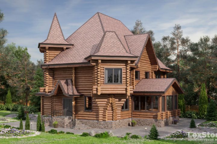 Визуализация дома: Рубленое бревно+панорамное остекление