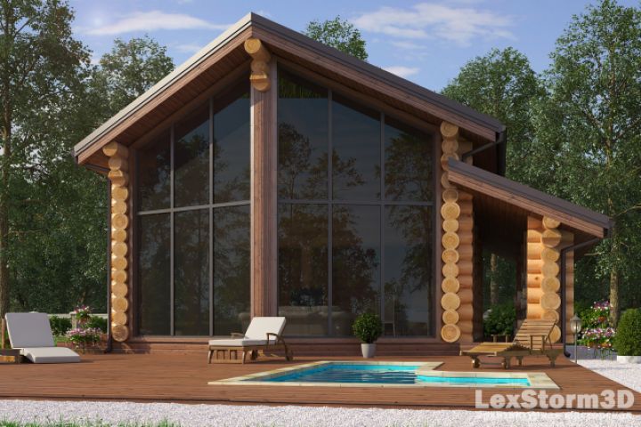 Визуализация дома: Рубленое бревно+панорамное остекление