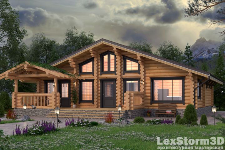 Вечерняя визуализайия дома из оцилиндрованного бревна