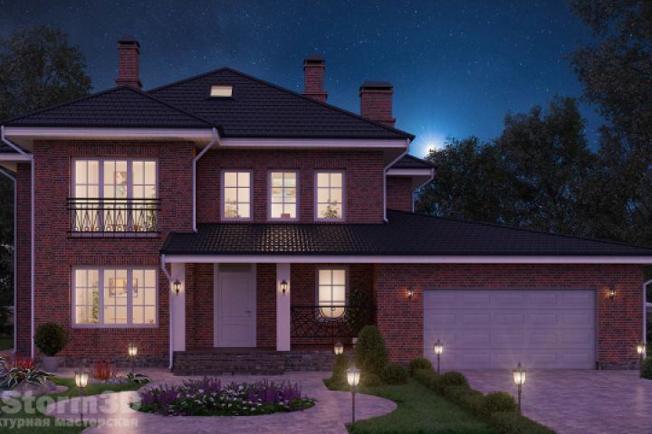 Классический кирпичный дом (ночь)
