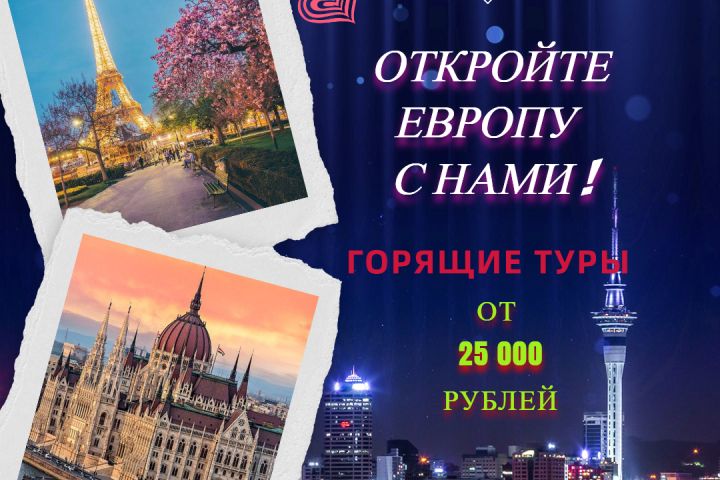 Подготовить баннер в инстаграм для рекламы туров в Европу