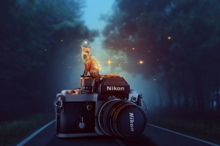 Иллюстрация создана для рекламы фотоаппарата Nikon. Задумка: "Можно фотографировать животных в темноте и всё будет отлично видно"