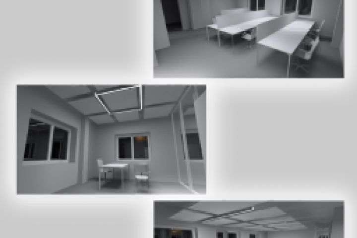 3д моделирование целого этажа офисного здания, с индивидуальными макетами под каждое помещение. К данной визуализации был сделан светорасчет и подбор оборудования, подходящего под задачи и нормы.