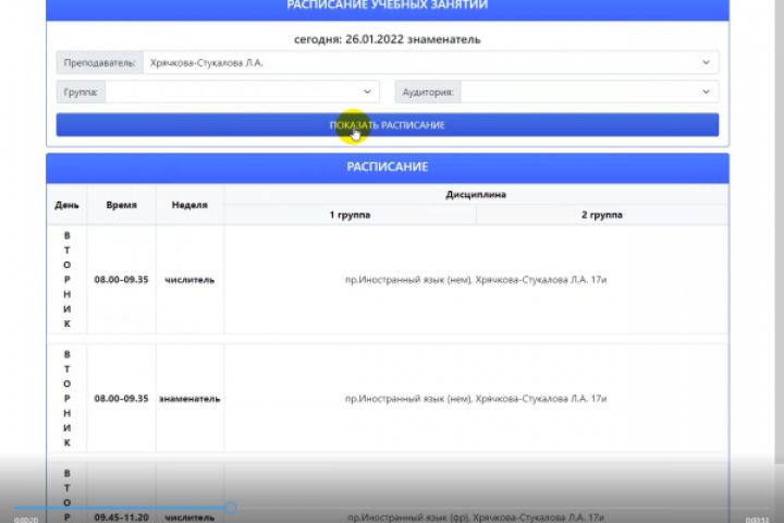 Имеем ряд файлов excel с расписанием учебных занятий. При помощи php нужно выбирать из них данные и выводить в таблицу.