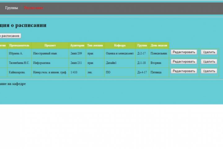 Написать простые формы для заполнения расписаний и Возможность добавлять, читать, редактировать, удалять (далее CRUD).