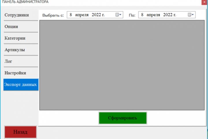 Автоматический подсчёт количества изделий и стоимости для каждого работника. Статистика по изготовленным изделиям за месяц. Выгрузка всех данных в таблицу Exel.