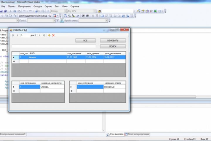 Разработка программы c# для работы с БД SQL Server 2005 - редактирование, добавление, удаление записей,поиск по записям.