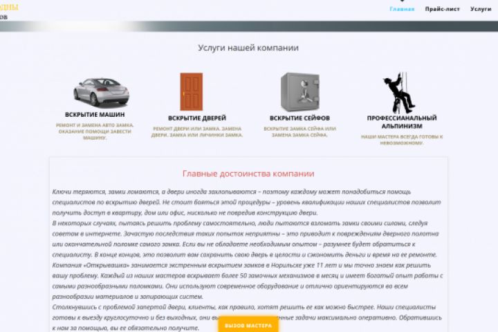 Работа над заполнением разделов "Услуги" , Информация", "История". Добавление изображений .