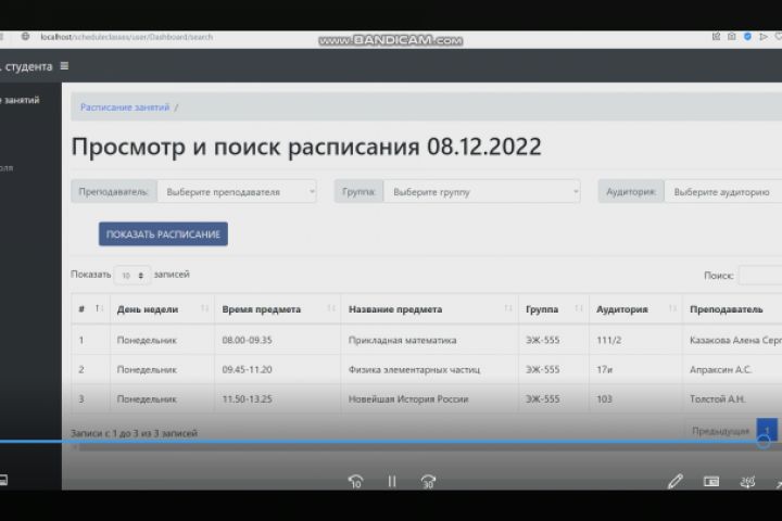 Два пользователя: пользователь(студент) может просматривать статический контент(расписание), администратор просматривает динамический контент и взаимодействует с базой данных, может изменять, удалять и добавлять данные, которые будут отображены в расписании.