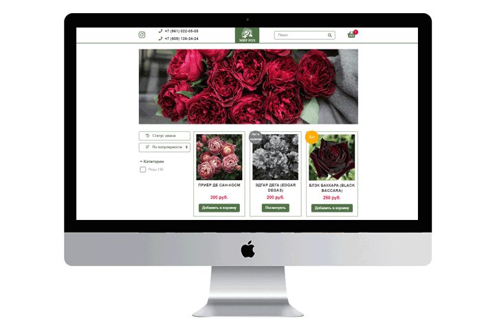 Интернет-магазин "Мир Роз". - Разработка дизайна - Корзина - Онлайн-оплата - Админка (работа с заявками и наполнением сайта)