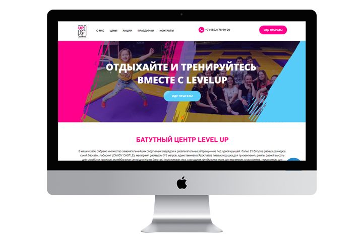 Сайт под ключ для батутного центра LevelUp. Заказчик: ООО "ВИД Групп" - Разработка лендинга - Кнопка обратного звонка - Админка (работа с заявками)