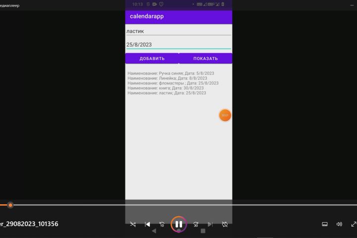 Приложение для записи и просмотра списка покупок на определенную дату.