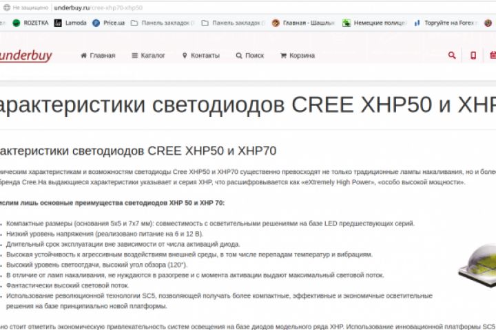 Сравнение характеристик светодиодов CREE XHP50 и XHP70 с аналогами для петербургской компании Underbuy (СПб ул. Ивановская + электронный магазин)
