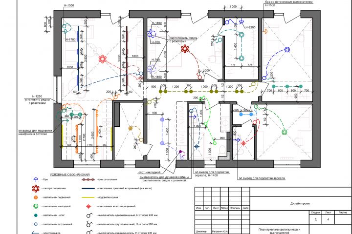 план привязки светильников и выключателей