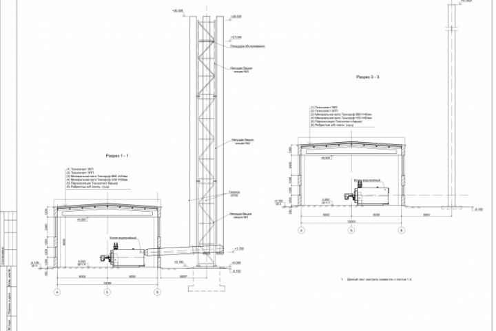 Реконструкция котельной, включающая замену дымовой металлической трубы на трубу башенного типа с газоходами из сэндвич-панелей. Устройство фундаментов под башню.