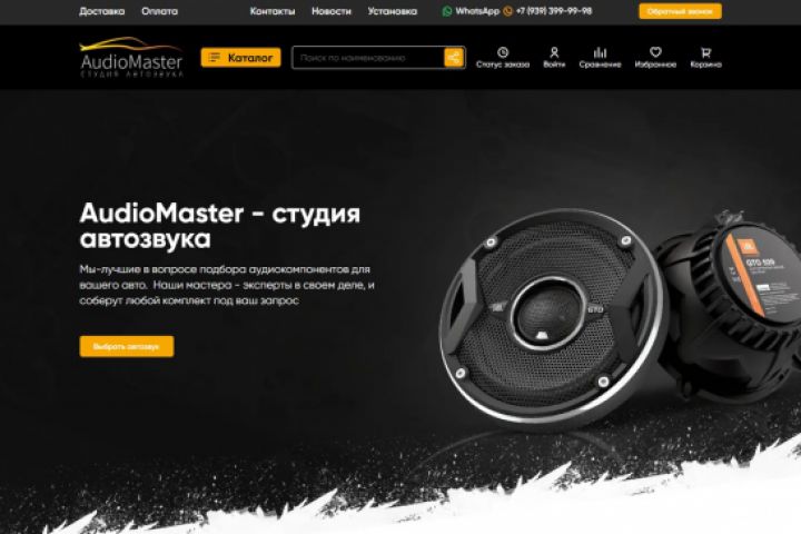 Сайт магазина, ориентирующегося на продажу аудиосистем и компонентов для автомобиля.