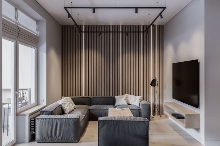 Трехкомнатная квартира для молодой семьи с двумя детьми в центре Москвы, любящих лаконичность и минимализм, натуральные материалы. Почти все стены квартиры (кроме детской игровой) – серого цвета, который выигрышно оттеняет все предметы интерьера и мебели.