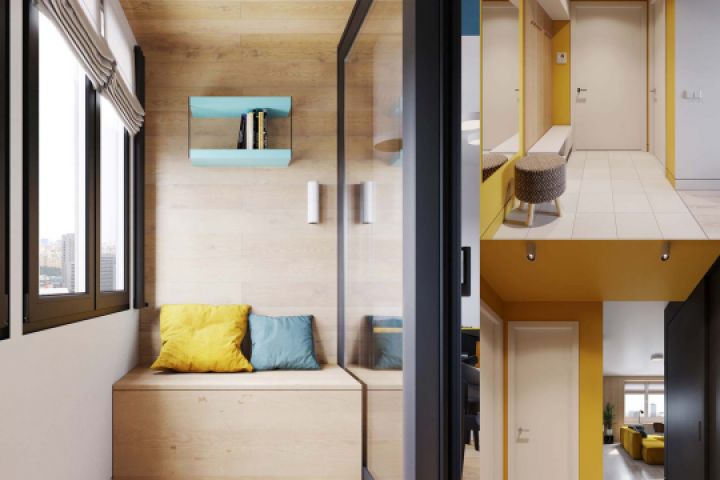 Лоджия является одновременно функциональной рабочей зоной и местом для отдыха. Здесь предусмотрена уютная сидушка, внутри которой находится место для хранения, а в рабочий стол встроен горшок для цветов, чтобы было всегда радостно вернуться к любимому делу.
