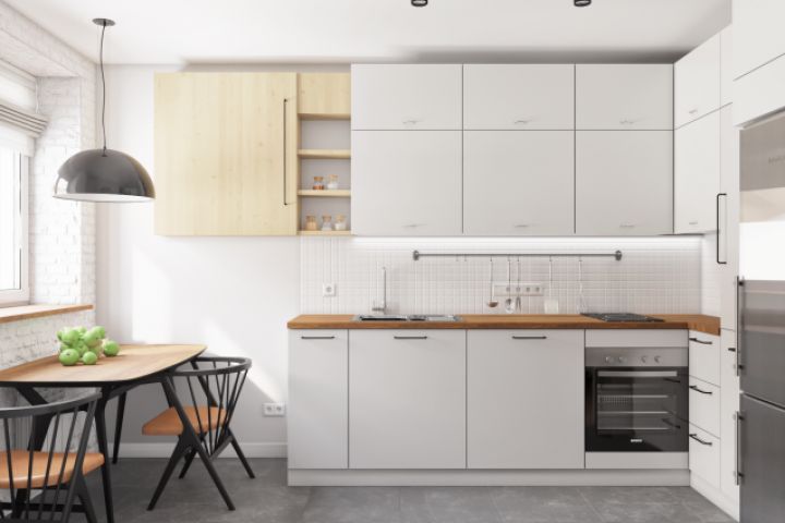 Отопление всей квартиры производится с помощью газового котла, расположенного на кухне. По этой причине невозможно было совсем отказаться от прегородки между кухней и гостиной-спальней.