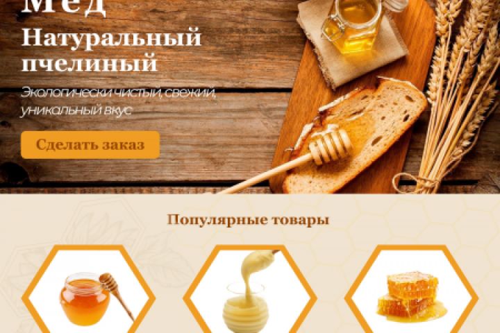 Дизайн сайта по продаже мёда - выгружены основные блоки. Полный сайт можно посмотреть на http://www.behance.net/yanagrosheva7