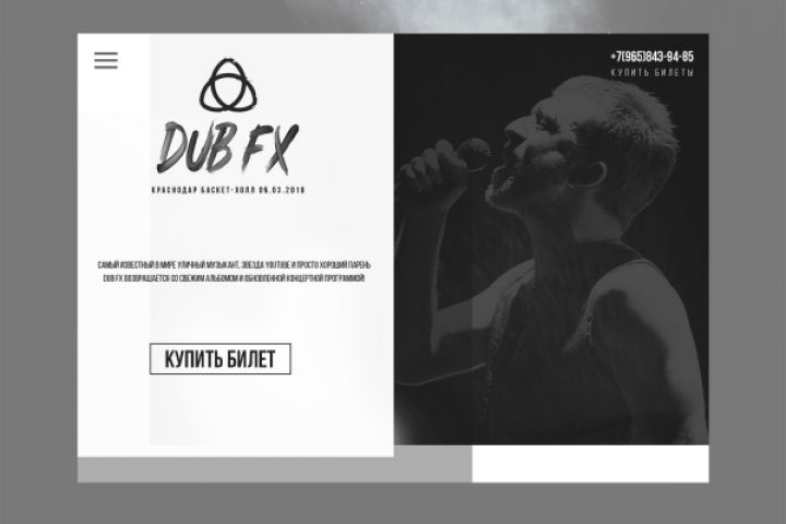 Разработка лендинга для продажи билетов на концерт DUB FX