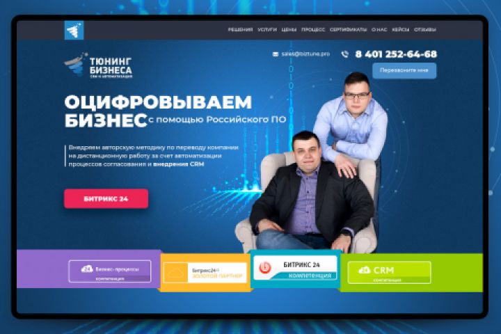 Одностраничный сайт. "Тюнинг Бизнеса". Внедряем авторскую методику по переводу компании на дистанционную работу за счет автоматизации процессов согласования и внедрения CRM