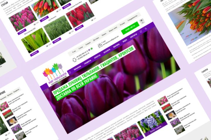 Для компании «Мир тюльпанов» разработан корпоративный сайт, включающий основные разделы для клиентов с информацией о компании, способах оплаты и доставки, галерею. Каталоги встроены в структуру проекта, а слайд-шоу — на главной странице.