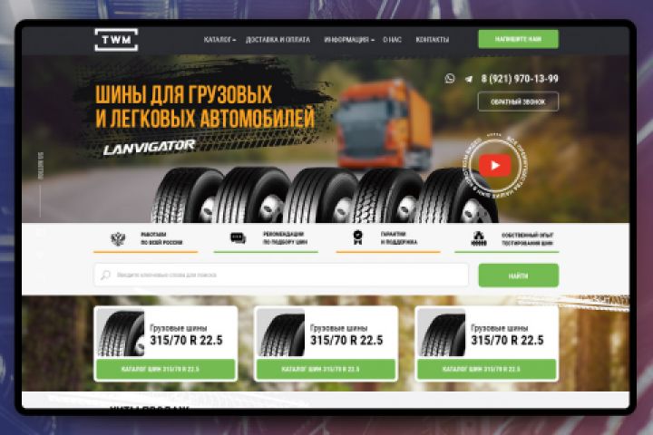 Компания TWM: Продажа шин для грузовых автомобилей “Lanvigator” Сделано: прототип, уникальный дизайн, верстка, разработка логотипа. Проект реализован на платформе “Тильда”
