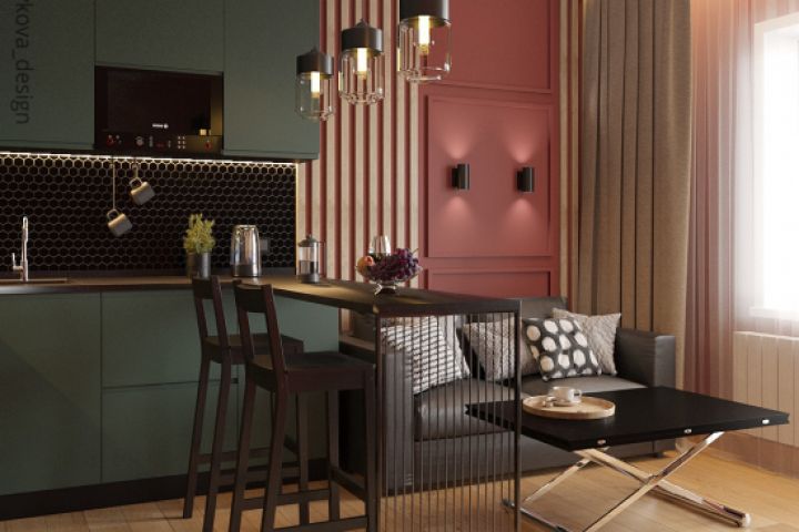 Кухня-гостиная в небольшой студии. Дизайн и визуализация разработан мной.