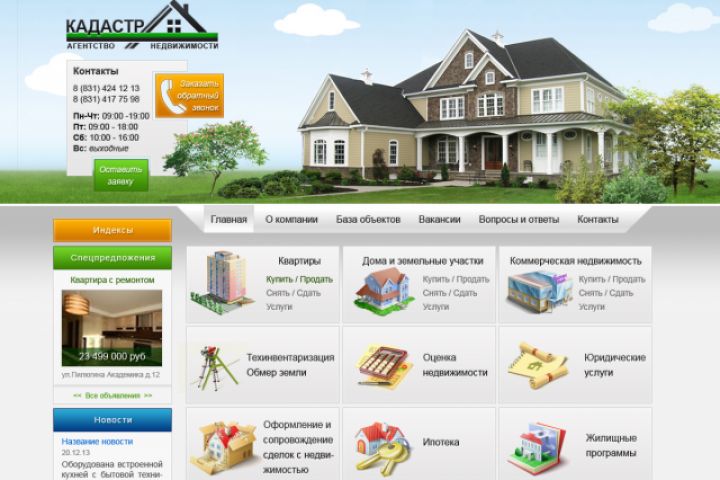 Сайт агентства недвижимости Кадастр