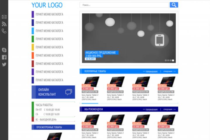 Стоимость 3000 руб. (Главная, статическая страница, каталог, страница товара)