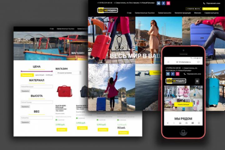 Интернет-магазин чемоданов. Сайт сделан на платформе WordPress. Яркий, адаптивный дизайн. Реализован каталог товаров и корзина. Подключена функция покупки после подтверждения наличия товара менеджером. Сайт сделан ро заказу веб-студии.