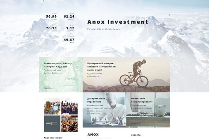 Дизайн главной страницы для инвестиционной компании Anox Investment Ltd.