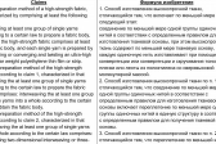 Перевод патента "Высокопрочная ткань и способ ее изготовления"