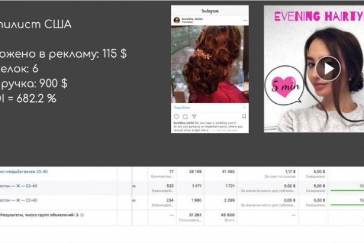 Заказчик: девушка - частный стилист. ГЕО: Хьюстон Конвертер: Профиль Instagram Бюджет: 115$ Заказов: 6 шт. Услуг заказано на 900$ ROI - 682,2 %