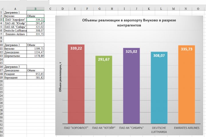 Необходимо было прописать формулы в таблице в соответствии с заданием, использовались такие формулы, как СУММЕСЛИМН, ИНДЕКС, ПОИСКПОЗ, ПРОСМОТРX, а также фильтр.xml для получения курса доллара на определенную дату из оф.сайта ЦБ РФ. В конце на основе полученных данных были построены диаграммы для анализа.