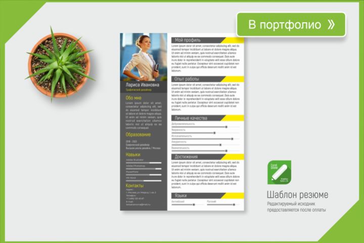 Шаблон резюме. Имеется редактируемый исходник под ваши требования и задачи.