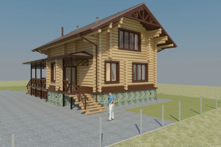 Визуализация бревенчатого дома с зимним садом (площадь жилых помещений 166м2).