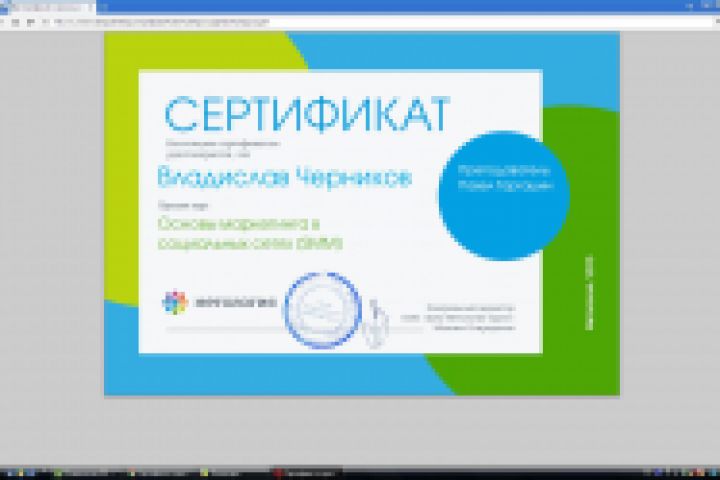 Мой сертификат о прохождении курса по SMM специальности в Нетологии - онлайн школе профессий в интернете.