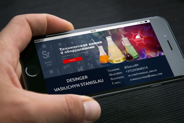 Баннер главной страницы сайта, построенного на Битриксе, целью которого является отображение деятельности компании, а именно реализации технической химии и лабораторного оборудования