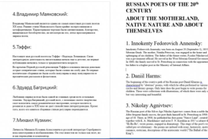 Перевод статьи про поэтов ХХ века с русского на английский язык для литературного форума. Это одна из моих работ.