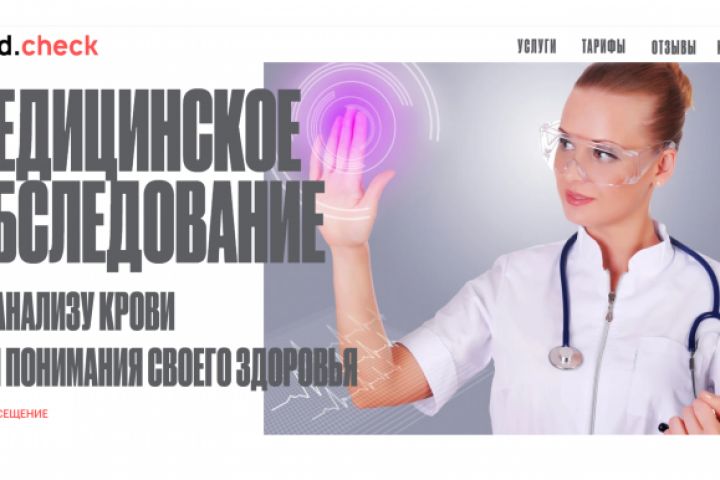 Лендинг был разработан для записи в клинику на услугу чекап. У компании был свой логотип, поэтому для поддержания лого использовала акцентный алый для кнопок. Для привлечения внимания использовала крупный шрифт.