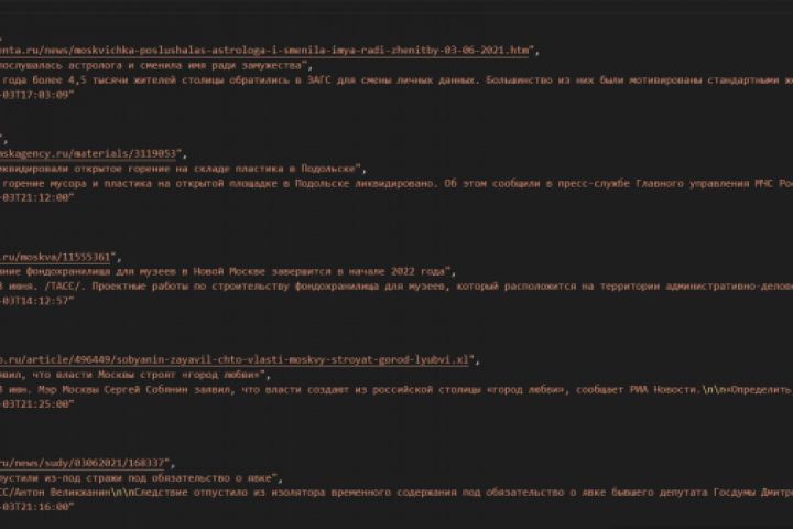 Пример собранных данных (архив с 848 тысячами новостных статей за 1-2 квартал 2021 года)