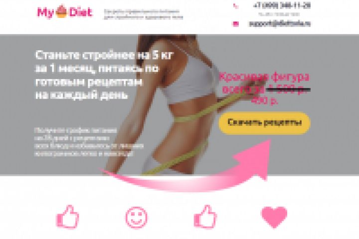 Сайт-визитка, продающая страница, сайт из одной страницы. Продажа рецептов для стройного тела. Блоки: 1) первый экран 2) форма заказа (заказы приходят на Вашу эл почту 3) ключевые преимущества 4) фотогалерея 5) отзывы 6) гарантия качества 7) контактные данные