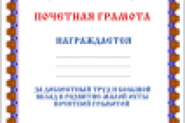 Почетная грамота муниципального совет №34 «За доблестный труд и большой вклад в развитие Малой Охты». Санкт-Петербург. Тираж 48 экз.