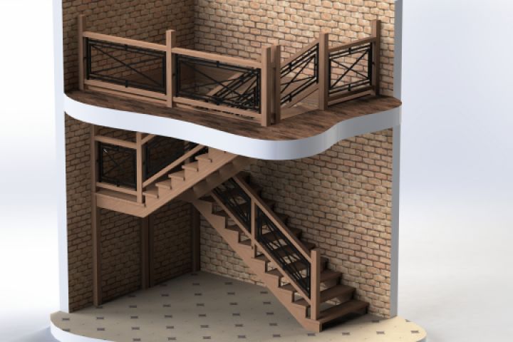 Лестница двухмаршевая с площадкой и баллюстрадой (ВВ)