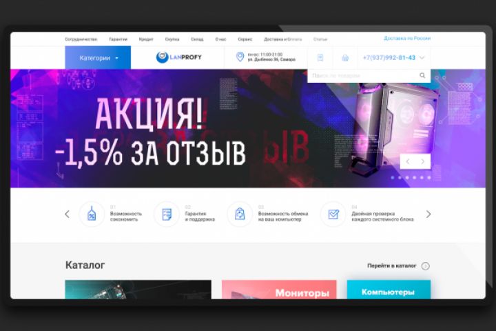 Редизайн интернет-магазина. Кейс на Behance - https://www.behance.net/gallery/84254969/Lanprofy-online-shop На данный момент сайт сверстан - https://lanprofy.ru/
